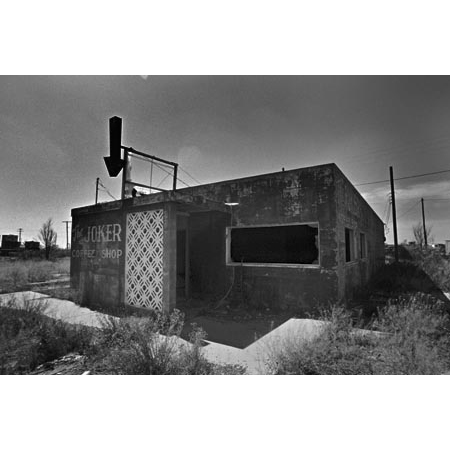 The next day grinds on across New Mexico. Interstate 40's shoulder is littered with dead dogs and twisted carcasses of recapped tires. Bypassed Route 66 towns lay sleepy and arthritic alongside the freeway with its endless convoys of semis throbbing past. The legendary old highway is reduced to a butchered afterthought of a frontage road. Running from nowhere to nowhere else, its blind crests and tight curves are impossible for today's high-speed tractor-trailers. Weeds grow in the expansion joints and the centerline peels off in chunks.