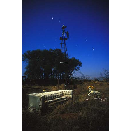 The Panhandle continues to be a photographic washout. My throttle foot itches. Longing for the familiar environment of the desert, I make a beeline south. By the time I get to Lubbock the sun is nearly set and the sky begins to cloud up. Again. I begin to feel I won't find a subject to shoot tonight. Luckily, I find an abandoned farm as the last slivers of sun are burying themselves in the horizon's cloudbank. Then the overcast sky suddenly splits, bathing the landscape with a bright monochromatic blue moon glow. The baked desolation of this lonely place on the Texas-New Mexico border cuts right to my soul. The atmosphere is timeless and still. The nearest dot on the map says “Griffith, Texas,” but I know there's nothing there.